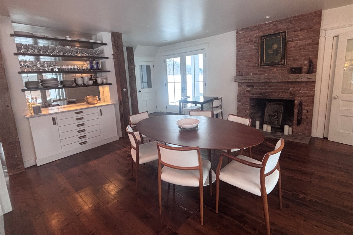 “Bright and welcoming dining area with original wood floors and charming historic details.”