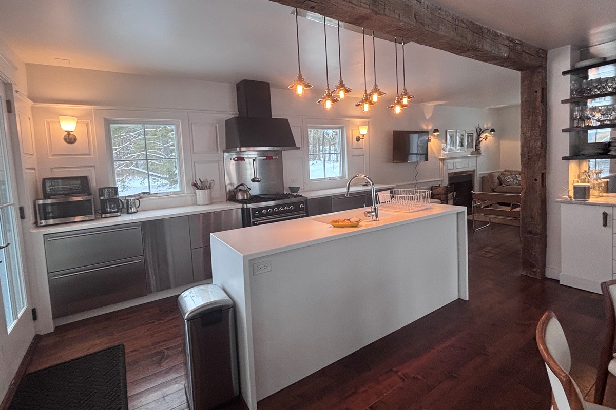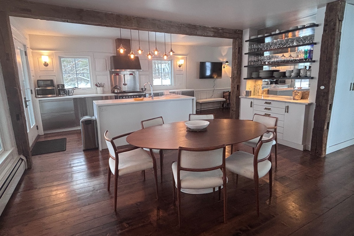 Spacious, sunlit kitchen and dining area—ideal for shared meals, game nights, and relaxed gatherings.