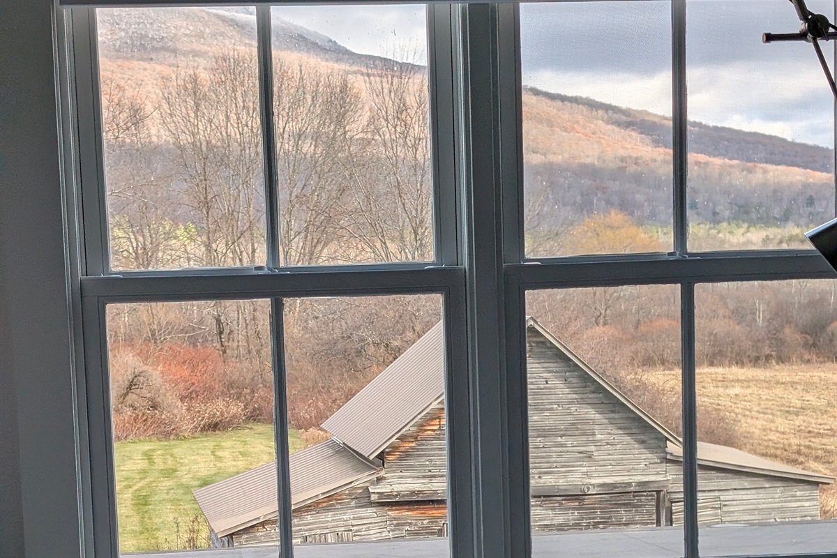 “Picturesque historic barn set among open fields with mountain views.”
